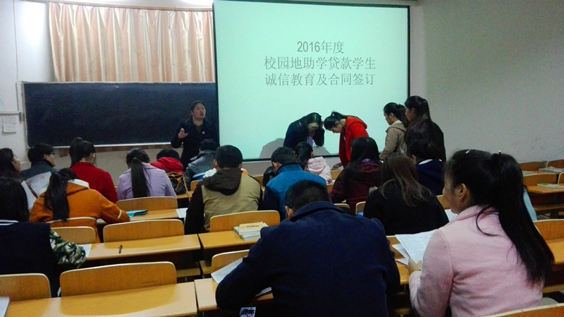2016年11月1日,在机场校区北院二楼多媒体教室,我院申请高校国家助学贷款的学生与国家开发银行签订了贷款合同及贷款承诺书。随后,院学生资助管理中心孙世佳老师对贷款学生进行了诚信教育。各院系资助专管员列席了活动。