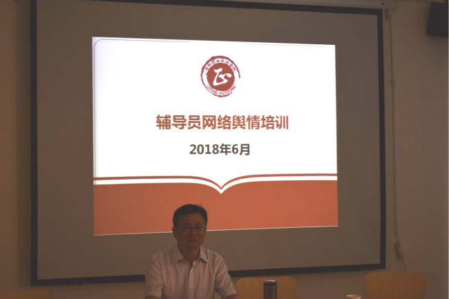 2018年6月25日下午,宣传(统战)部副部长、思政部主任侯育谦对我院专职辅导员进行网络舆情防控培训。