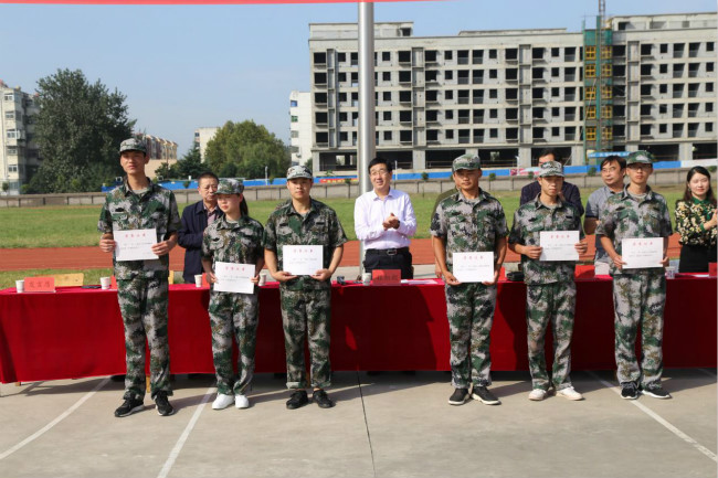 院领导和军训教官为先进集体、先进个人代表颁奖。