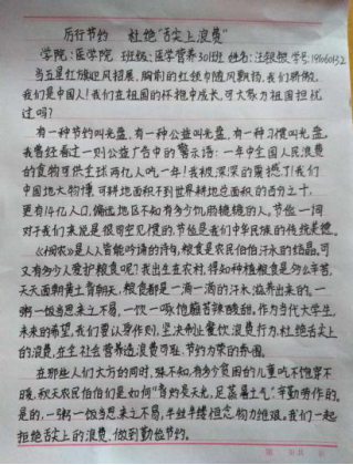 “米粒虽小,尤见礼义廉耻,节俭事微,可助兴国安邦”。为深入贯彻落实习近平总书记关于坚决制止餐饮浪费行为,切实培养节约习惯的重要指示精神,大力弘扬中华民族勤俭节约传统美德,培养大学生树立勤俭节约意识,我校组织全校学生开展了“厉行节约、杜绝‘舌尖上的浪费’”主题宣传教育系列活动。