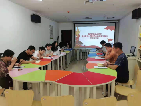 6月17日下午,学生处党支部组织处室全体同志在大学生活动中心二楼团体活动室集中进行党史学习。