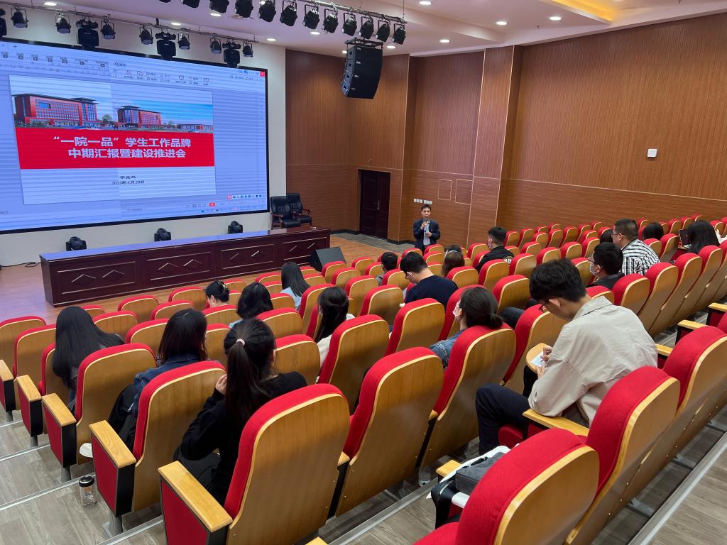 按照4月份学生工作安排,学生处于4月20日上午在大学生活动中心心理剧场,组织开展“一院一品”学生工作品牌中期汇报暨建设推进会,部分学工办主任、专职辅导员和学生处有关人员参加了此次会议。