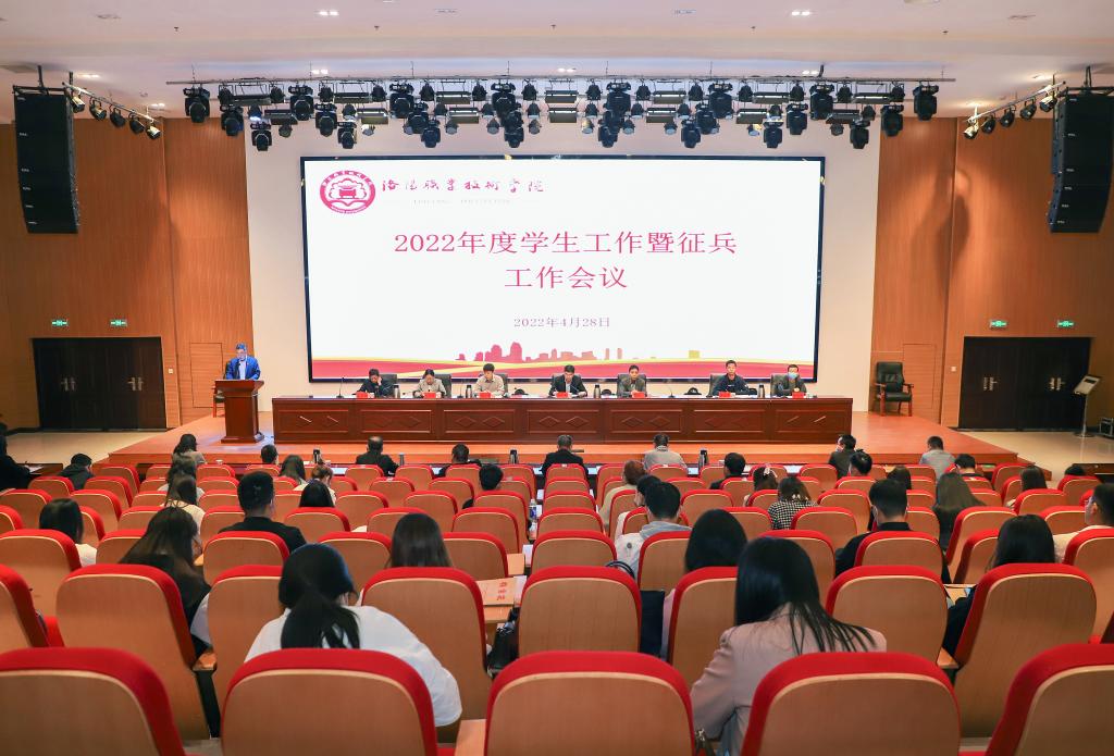 4月28日上午,在大学生活动中心一楼报告厅召开我校2022年学生工作暨征兵工作会议,副院长张志友出席会议,学生处,团委,二级学院(部)副书记、学工办主任、专职辅导员参加会议,学生处副处长陈志华主持会议。