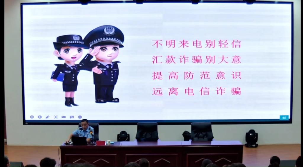 本次讲座邀请了伊滨区公安分局郭明杰警官和高新区法院高珊法官。郭明杰警官围绕电信诈骗概念、常见形式和识别防范方法等方面进行讲解,加深了同学们对电信诈骗的认识,帮助同学们掌握了防范电信诈骗方法。高珊法官以《抵制不良诱惑,构建文明校园》为主题,用一个个生动具体的案例,科普法律法规,引导同学们遵守校规校纪,抵制不良诱惑,远离校园欺凌,系好人生安全的“纽扣”。