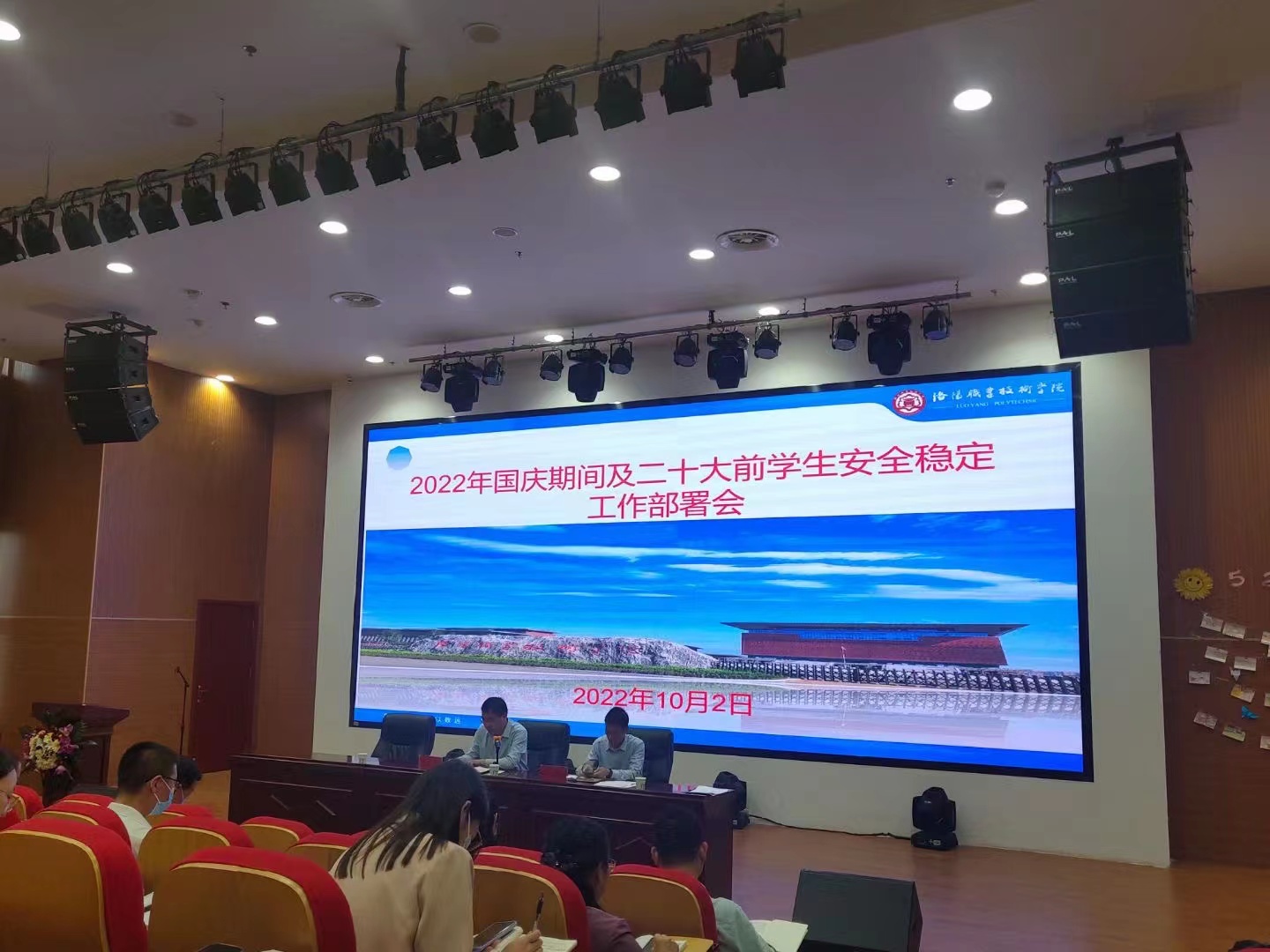 学校领导高度重视国庆假期学生安全稳定工作,做好高校安全稳定工作部署,同时有效防住疫情入侵校园。为落实好疫情下的校园闭环管理,学生处于10月2日在大学生活动中心二楼心理剧场召开全体辅导员会议,张志友副校长部署假期期间的安全稳定工作,要求全体学工人员提高站位、筑牢安全意识防线,层层压实责任,要求辅导员采用多种形式做好学生的教育管理。