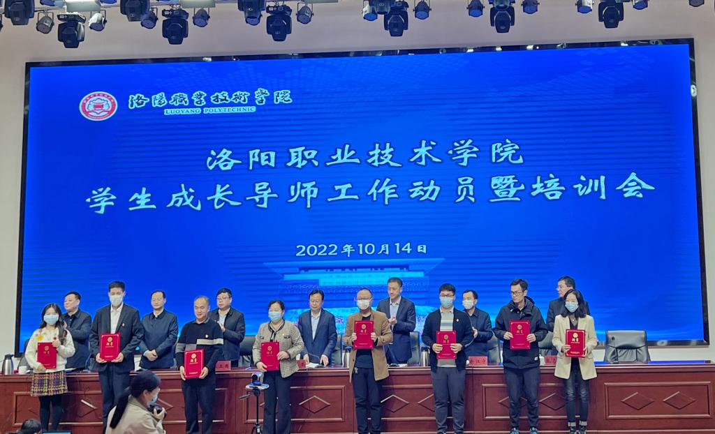 副校长张志友宣读《洛阳职业技术学院学生成长导师工作实施细则》,对成长导师的工作职责、工作重点、工作要求、管理考核等方面进行明确。校领导向成长导师代表颁发聘书。
