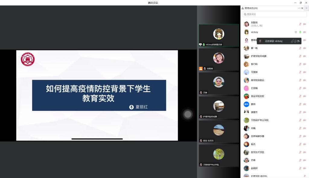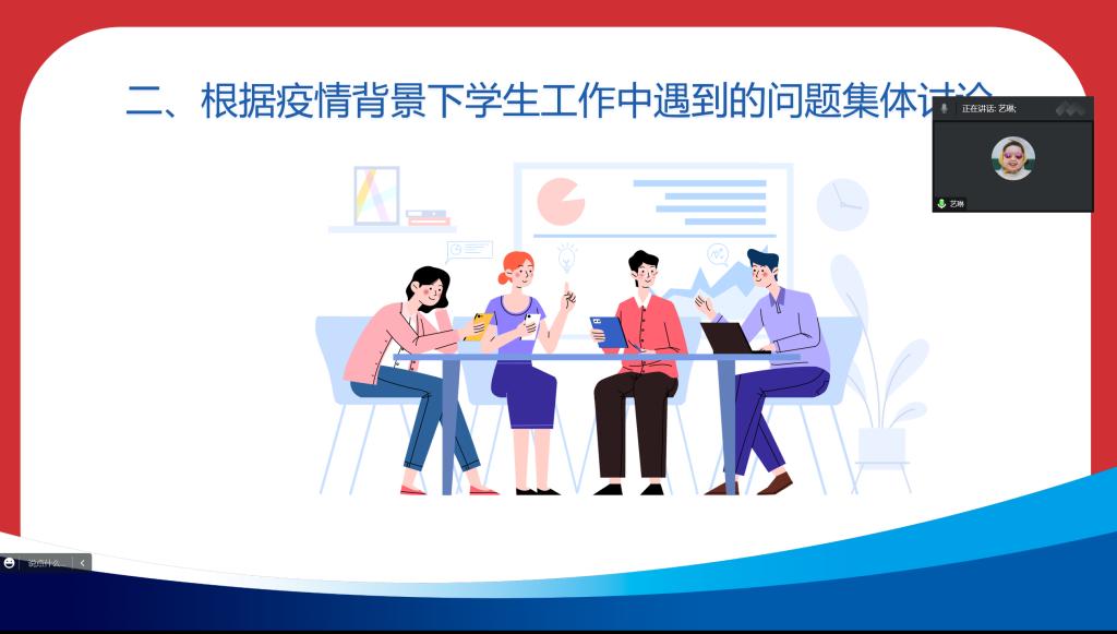 11月11日上午,第六期“明思”辅导员工作沙龙在腾讯会议举行,本期主题为“校园疫情防控下学生教育管理经验交流”。思政科科长温慧芳,部分辅导员参加了本次活动,由会计学院刘智莉主持。