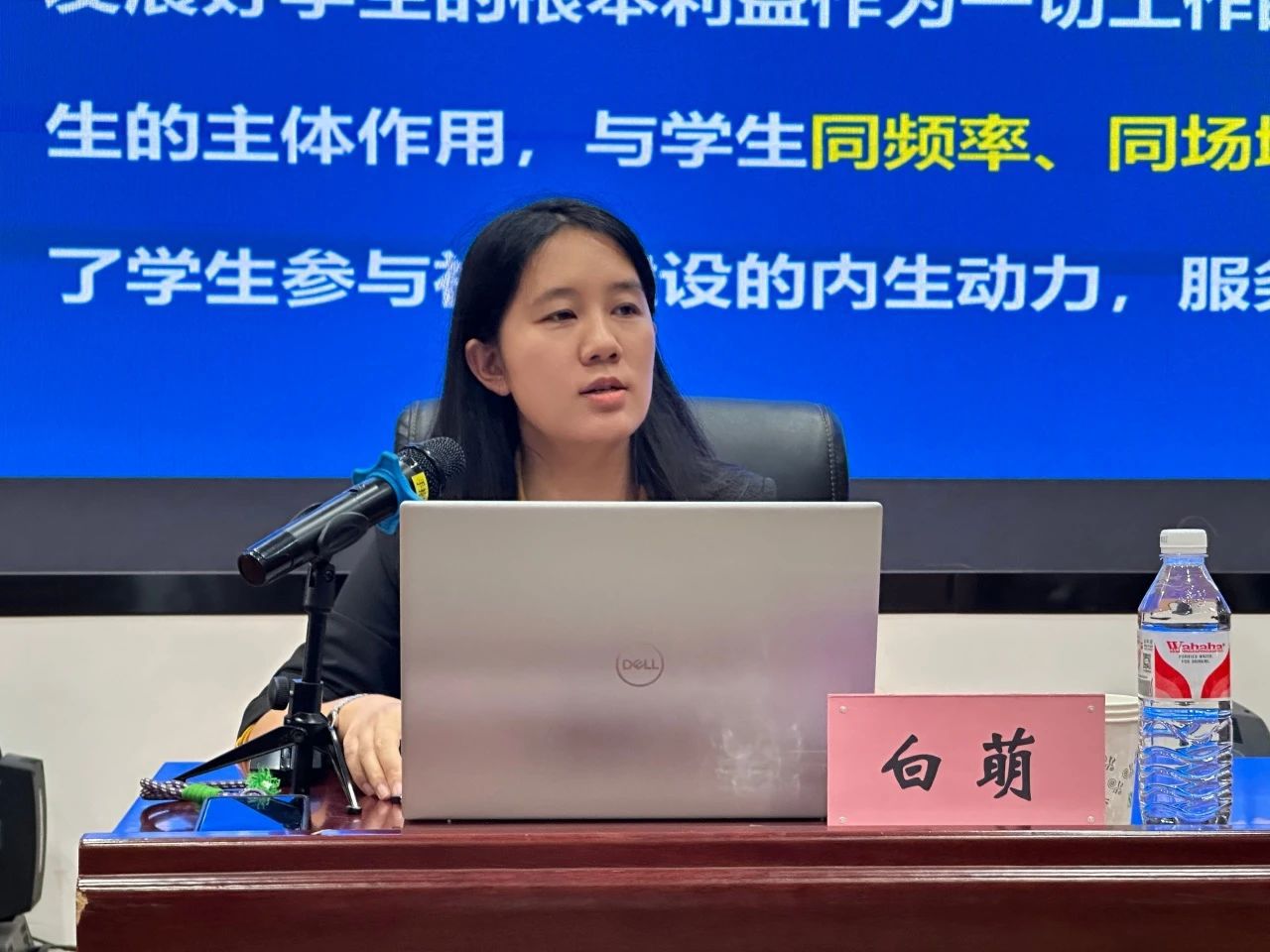 会上,白萌以“一站式”学生社区建设背景沿革为切入口,结合郑州西亚斯学院“一站式”学生社区综合管理模式建设实例,围绕党建引领、队伍入驻、学生参与、文化建设、数字赋能、条件保障等六大方面进行了详细讲授。
