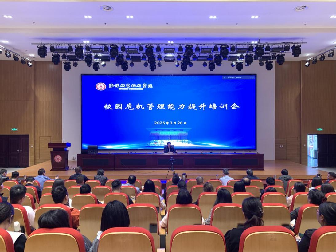 3月26日,我校在大学生活动中心学术报告厅举办校园危机管理能力提升培训会,辽宁生态工程职业学院招生部部长刘明耀副教授作专题培训。副校长张卫国出席会议并讲话。