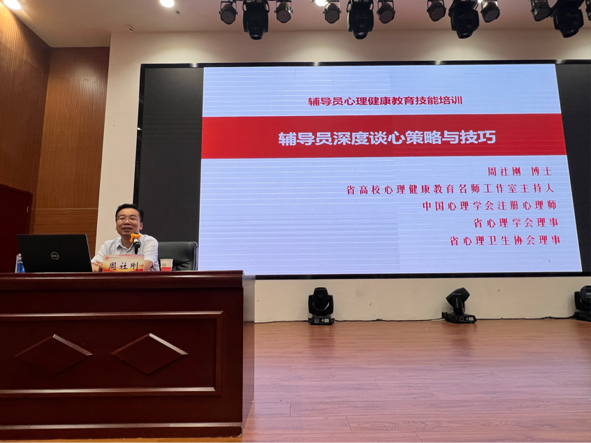 河南师范大学党委学工部副部长、心理中心主任周社刚教授以《辅导员深度谈心策略与技巧》为题,围绕“辅导员深度谈心”,从“个体化、专业化、深入化”的内涵,到“尊重、共情、无条件积极关注”的关系建立核心,再到准备、初始、探索、工作、总结五阶段的实操技巧,用“学生打游戏沟通”“奖学金评选共情”等案例,还分享了SOLER非言语技巧、标尺提问、安全岛技术等实用方法,为我们提供了“谈心工具箱”。