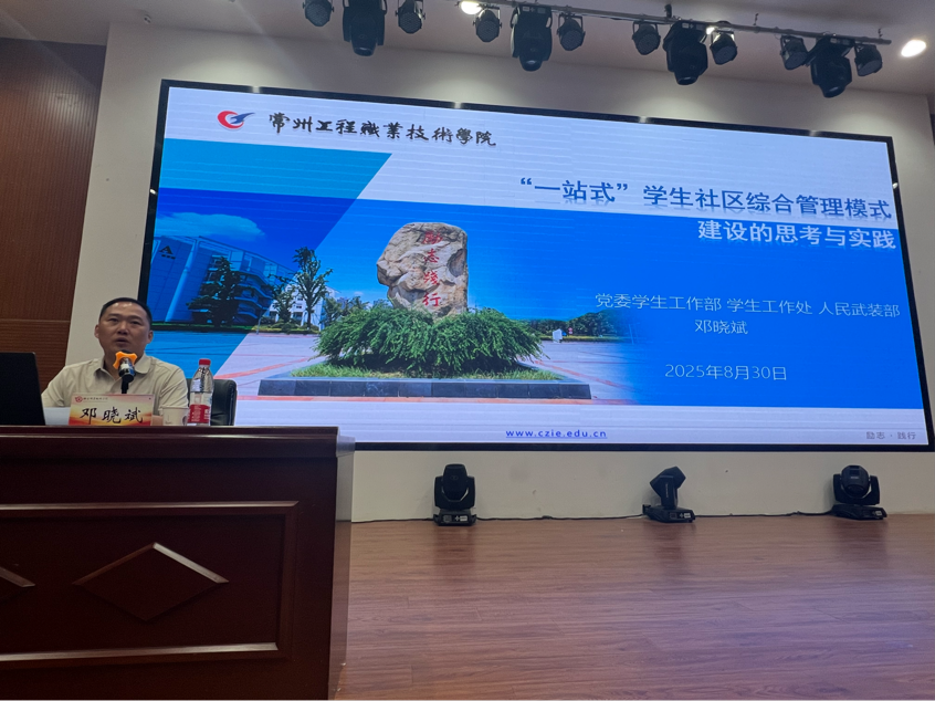 常州工程职业技术学院学工部部长邓晓斌以《“一站式”学生社区综合管理模式建设的思考与实践》为题,聚焦“一站式”社区“怎么干”的核心问题,通过时间逻辑、理论逻辑、实践逻辑三个维度,紧扣教育部最新版提质增效指南,从党建引领、队伍入驻、学生参与、文化建设、数字赋能、条件保障六个关键方面,深入浅出地讲解了常州工程职业技术学院社区建设的具体路径、特色做法与创新思路,为我们提供了极具价值的参考范本。