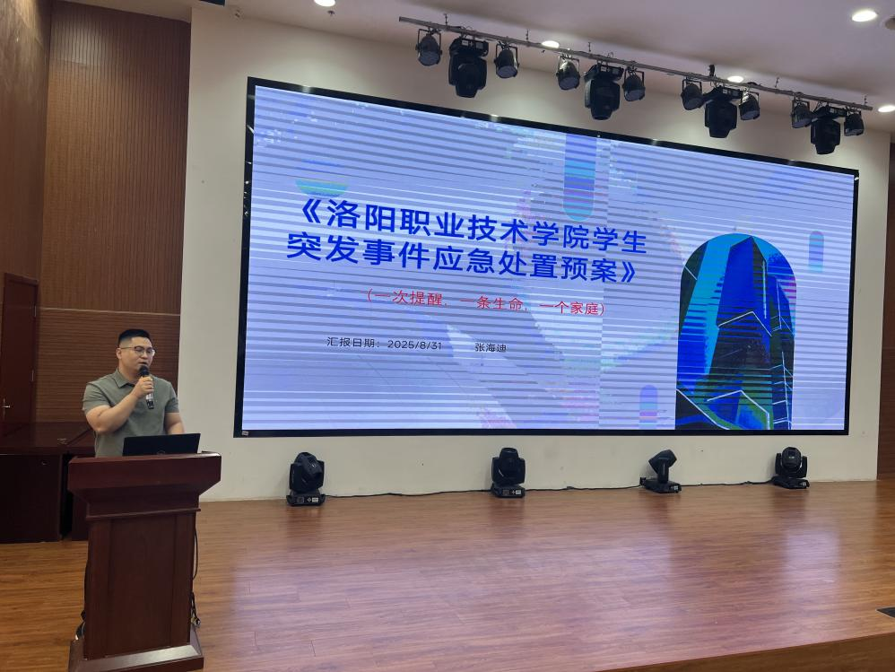 在学生工作复盘研讨会上,会计学院、基础医学院、信息工程学院、汽车轨道与交通学院、文物保护与考古学院代表各自分享了典型案例的处置经验,并重温了《洛阳职业技术学院学生突发事件应急处置预案》。