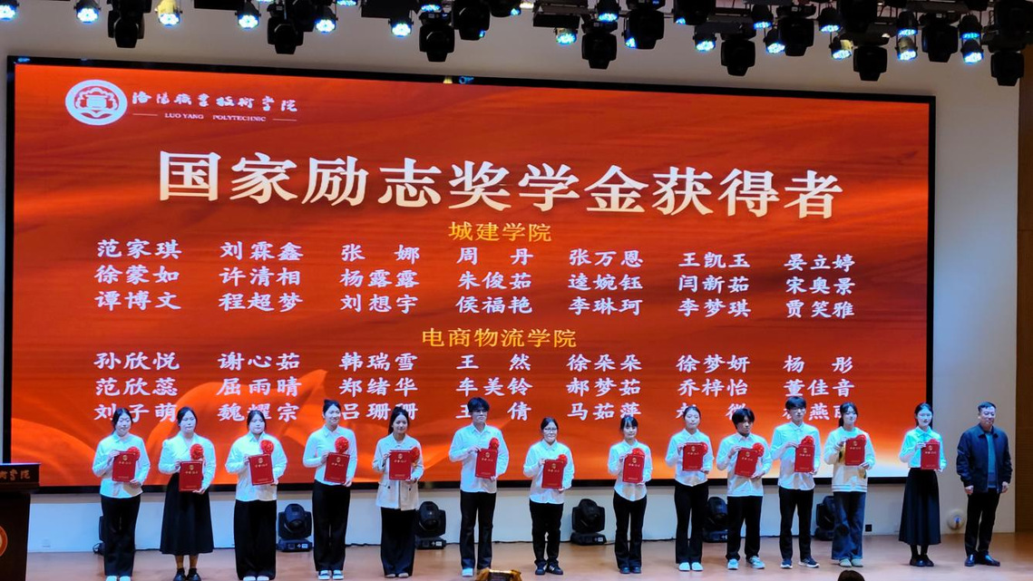 活动现场,获得2024-2025学年国家奖学金、国家励志奖学金、学院奖学金,以及在河南省第18届“诚信校园行”学生资助宣传教育活动中获奖的师生代表依次上台领奖。