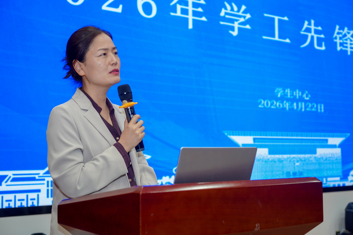 4月22日,我校在大学生活动中心心理剧场举办2026年度“学工先锋”评审会,副校长任扬出席活动并讲话。